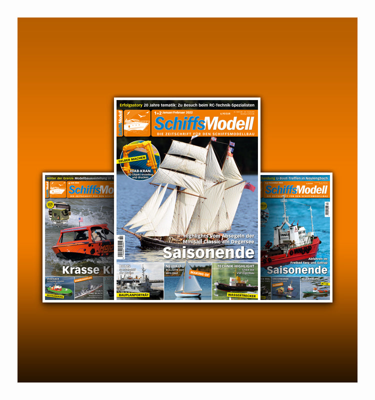 Zwischen Tradition und Moderne ist SchiffsModell fest verankert. Hier finden Sie die gesamte Bandbreite des faszinierenden Hobbys Schiffsmodellbau wieder.Segel- und Motorschiffe, Funktions- und Zweckmodelle, Baukasten und Eigenbauten, vorbildgetreue Yachten, Schlepper, Dampfer, Marineschiffe, U-Boote und vieles mehr.