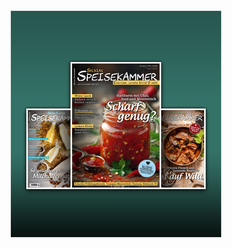 Ob eingekocht, eingemacht, eingelegt, fermentiert, gedörrt, gepökelt oder geräuchert – haltbar und lecker soll es sein. Sylvias SPEISEKAMMER richtet sich an alle Foodbegeisterten, die auf Qualität achten und wissen möchten, woraus ihr Essen besteht. Die möglichst wenig fertige Lebensmittel kaufen und Freude am Selbermachen haben.