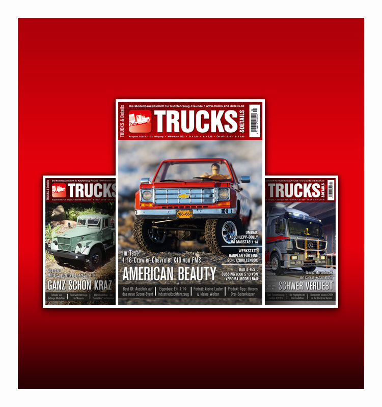 TRUCKS & Details steht für qualitativ hochwertigen Modellbau im Bereich ferngesteuerter Lkw-Modelle und ist in diesem Markt wichtiger Meinungsbilder. Vom Papier über den Druck, die Bild- und Textauswahl bis zum Vertrieb – auf allen Ebenen setzen wir auf höchste Qualität.