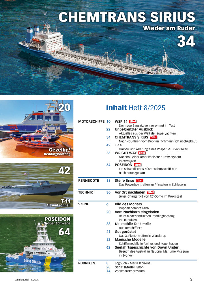 Zwischen Tradition und Moderne ist SchiffsModell fest verankert. Hier finden Sie die gesamte Bandbreite des faszinierenden Hobbys Schiffsmodellbau wieder.