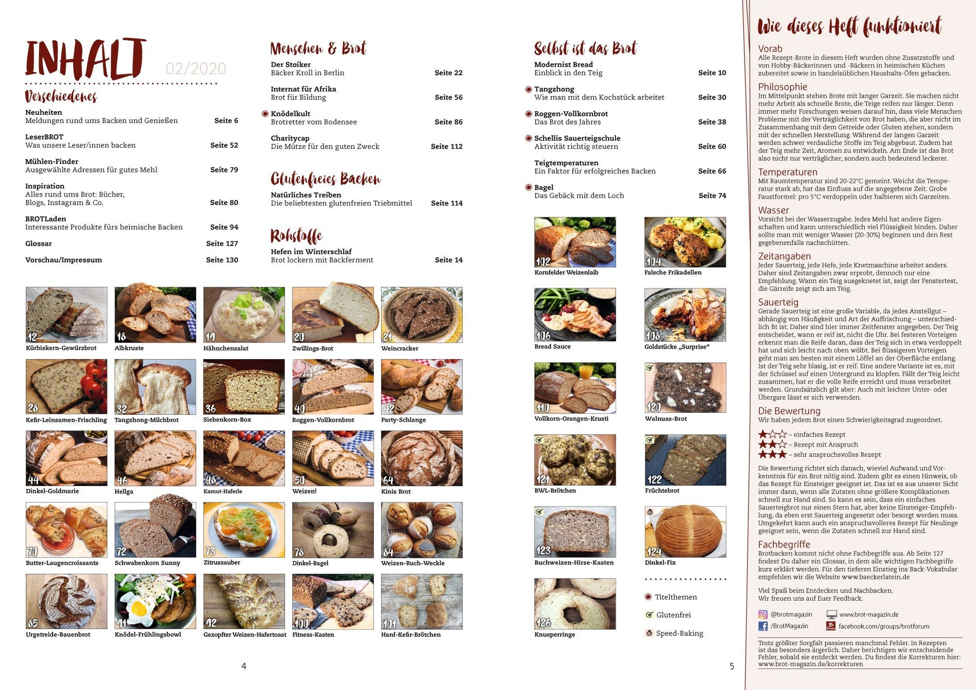 Gute Rohstoffe, ein paar richtige Handgriffe und dem Teig Zeit lassen - so entsteht perfektes Brot, aromatisch und bekömmlich. Brot, das schmeckt "wie früher" und das man ohne Magengrummeln isst. Die Zeitschrift BROT bringt alle zwei Monate mehr als 30 Rezepte für bekömmliche, kreative, schmackhafte und alltagstaugliche Brote. Darüber hinaus gibt es in jeder Ausgabe nützliche Informationen über Rohstoffe, Handgriffe, Triebmittel wie Hefe oder Sauerteig, die Prozesse in Teig und Ofen sowie Tipps und Tricks für das heimische Backen. Mit BROT wirst Du selbst Schritt für Schritt zur erfolgreichen Bäckerin, machst Familie, Freunde und Dich selbst mit aromatischen Broten glücklich. Darüber hinaus erzählen wir in jeder Ausgabe Geschichten über Menschen die von und mit Brot leben. Ob Getreidezüchter/in, Landwirt/in, Müller/in oder Bäcker/in - wir zeigen Menschen, die jeden Tag mit Leidenschaft für gutes Brot arbeiten.
