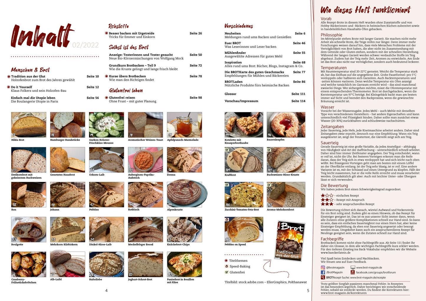 Gute Rohstoffe, ein paar richtige Handgriffe und dem Teig Zeit lassen - so entsteht perfektes Brot, aromatisch und bekömmlich. Brot, das schmeckt "wie früher" und das man ohne Magengrummeln isst. Die Zeitschrift BROT bringt alle zwei Monate mehr als 30 Rezepte für bekömmliche, kreative, schmackhafte und alltagstaugliche Brote. Darüber hinaus gibt es in jeder Ausgabe nützliche Informationen über Rohstoffe, Handgriffe, Triebmittel wie Hefe oder Sauerteig, die Prozesse in Teig und Ofen sowie Tipps und Tricks für das heimische Backen. Mit BROT wirst Du selbst Schritt für Schritt zur erfolgreichen Bäckerin, machst Familie, Freunde und Dich selbst mit aromatischen Broten glücklich. Darüber hinaus erzählen wir in jeder Ausgabe Geschichten über Menschen die von und mit Brot leben. Ob Getreidezüchter/in, Landwirt/in, Müller/in oder Bäcker/in - wir zeigen Menschen, die jeden Tag mit Leidenschaft für gutes Brot arbeiten.