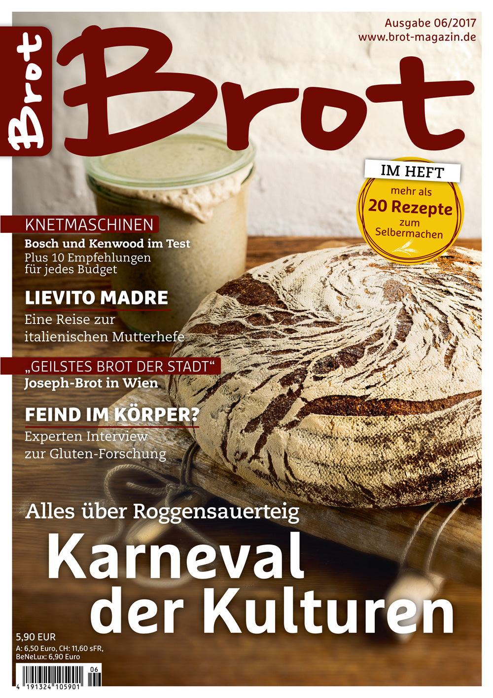 Gute Rohstoffe, ein paar richtige Handgriffe und dem Teig Zeit lassen - so entsteht perfektes Brot, aromatisch und bekömmlich. Brot, das schmeckt "wie früher" und das man ohne Magengrummeln isst. Die Zeitschrift BROT bringt alle zwei Monate mehr als 30 Rezepte für bekömmliche, kreative, schmackhafte und alltagstaugliche Brote. Darüber hinaus gibt es in jeder Ausgabe nützliche Informationen über Rohstoffe, Handgriffe, Triebmittel wie Hefe oder Sauerteig, die Prozesse in Teig und Ofen sowie Tipps und Tricks für das heimische Backen. Mit BROT wirst Du selbst Schritt für Schritt zur erfolgreichen Bäckerin, machst Familie, Freunde und Dich selbst mit aromatischen Broten glücklich. Darüber hinaus erzählen wir in jeder Ausgabe Geschichten über Menschen die von und mit Brot leben. Ob Getreidezüchter/in, Landwirt/in, Müller/in oder Bäcker/in - wir zeigen Menschen, die jeden Tag mit Leidenschaft für gutes Brot arbeiten.