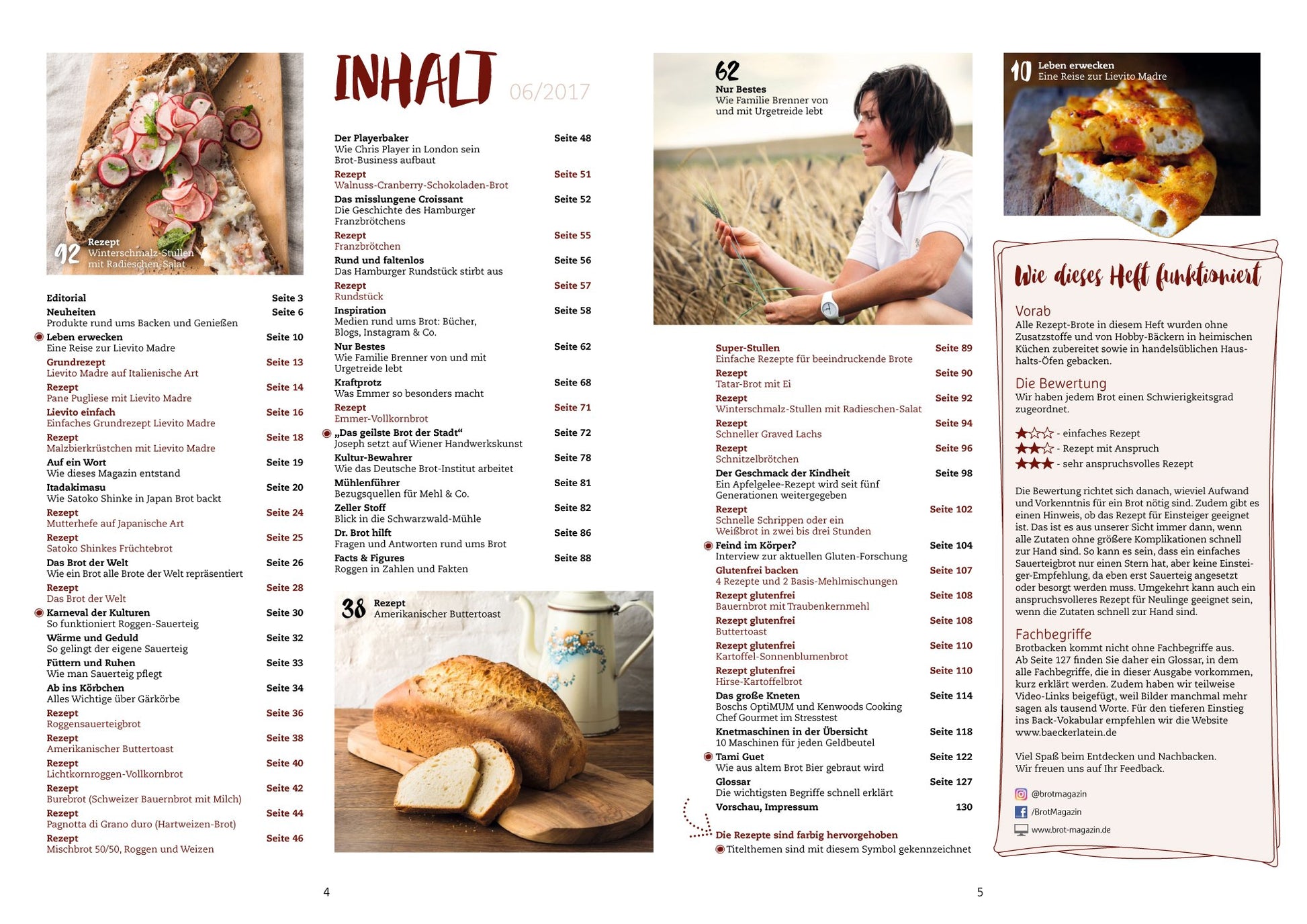 Sebastian Marquardt, Chefredakteur BROT: „Der Name ist Programm. Wir erzählen im Magazin Geschichten rund ums Brot, zeigen Menschen, die von und für Brot leben. Vor allem aber helfen wir dabei, die Materie der Brotherstellung besser zu verstehen und selbst fantastische Brote zu backen. Die zahlreichen Rezepte einer jeden Ausgabe liefern dafür die perfekte Grundlage.“