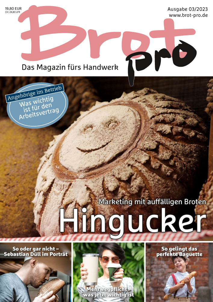 BROTpro ist das Magazin fürs Backhandwerk. Viermal jährlich dreht sich in diesem Magazin alles um gutes handwerkliches Brot. Wir erzählen Geschichten über alles, was gutes Brot ausmacht. Wir blicken in Backstuben rund um den Globus. Und wir verlieren dabei die Betriebswirtschaft nicht aus den Augen. Nicht zuletzt gibt es in jeder Ausgabe kreative Rezepte, die Kunden überzeugen und sich gut in den täglichen Arbeitsablauf integrieren lassen.