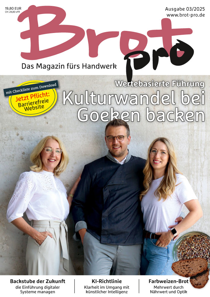 BROTpro ist das Magazin fürs Backhandwerk. Viermal jährlich dreht sich in diesem Magazin alles um gutes handwerkliches Brot. Wir erzählen Geschichten über alles, was gutes Brot ausmacht. Wir blicken in Backstuben rund um den Globus. Und wir verlieren dabei die Betriebswirtschaft nicht aus den Augen. Nicht zuletzt gibt es in jeder Ausgabe kreative Rezepte, die Kunden überzeugen und sich gut in den täglichen Arbeitsablauf integrieren lassen.