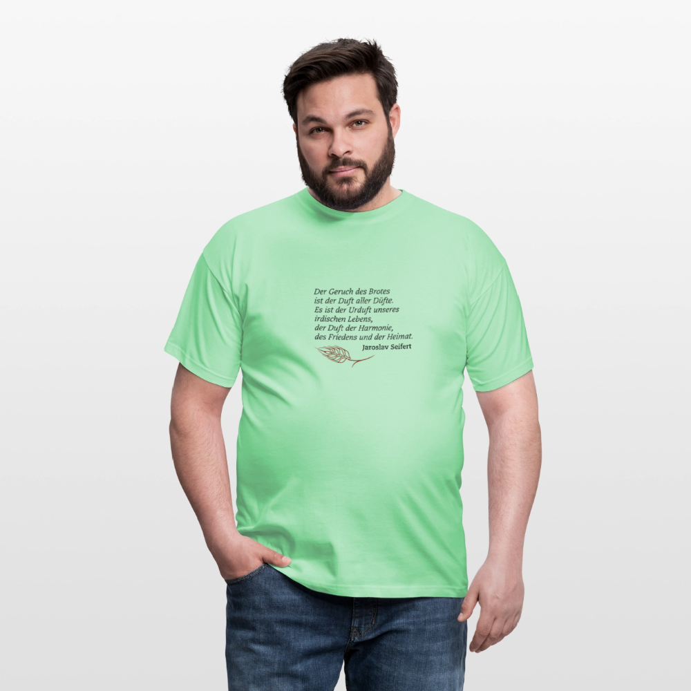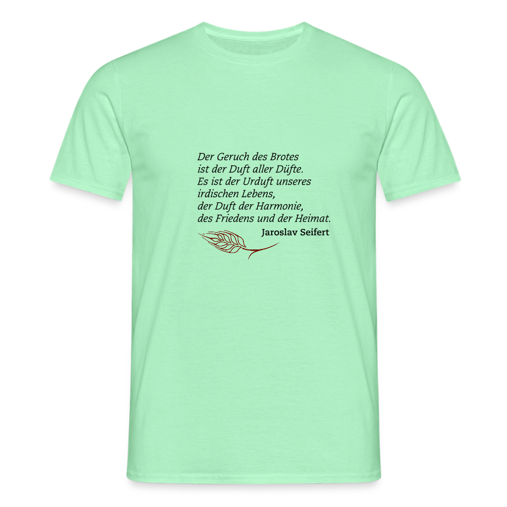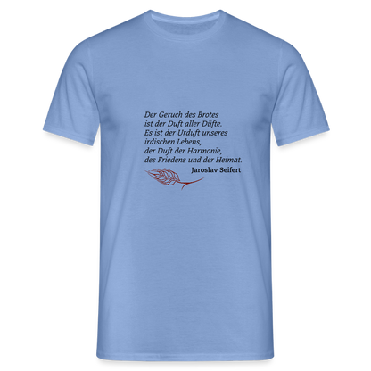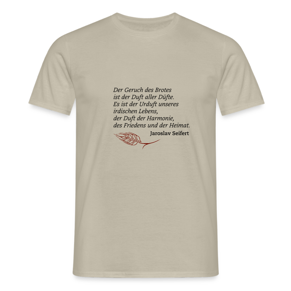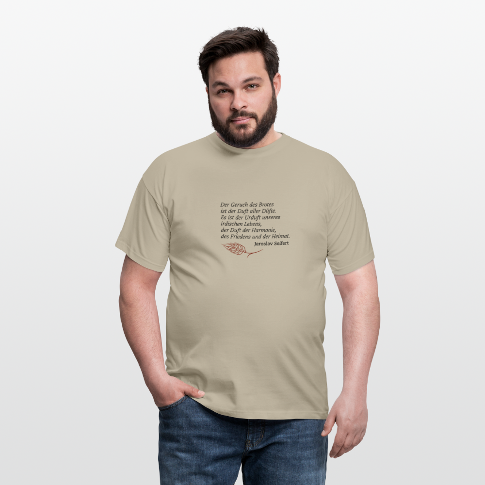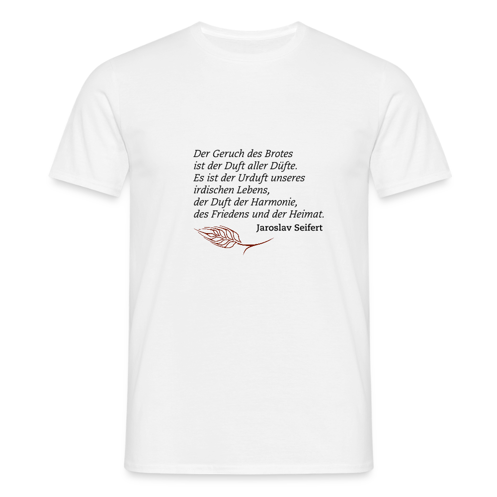 Dieses T-Shirt trägt Worte, die nachklingen – von Jaroslav Seifert, Nobelpreisträger und Menschenfreund. Ein stilles Statement für Wärme, Frieden und das, was uns verbindet: der Duft der Heimat.