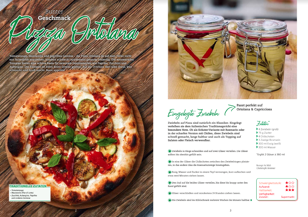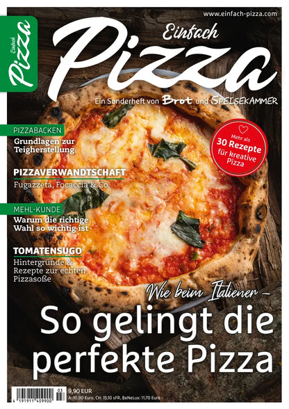 Luftiger Rand, krosser Boden, fruchtiges Tomatensugo, zartgeschmolzener Fior di Latte, etwas Basilikum und ein Schuss Olivenöl. Das sind die Zutaten für eine perfekte Pizza Margherita. Klingt simpel, ist es auch. Aber damit es wirklich schmeckt „wie beim Italiener”, sollte man ein paar Dinge beachten. Von der Wahl des Mehls über die Zubereitung des Teigs bis hin zur Herstellung des Tomatensugos und dem perfekt geeigneten Käse. Alle nötigen Infos dafür liefert „Einfach Pizza“. Für dieses Sonderheft haben zwei Redaktionen ihr gesamtes Wissen zusammengeworfen. Aus der BROT-Redaktion kam die Expertise für die Teigherstellung – auch für glutenfreie Teige. Von der Wahl des richtigen Mehles bis hin zur Verarbeitung des fertigen Teiglings. Die SPEISEKAMMER-Redaktion hingegen hat sich dem Pizzabelag gewidmet. Erklärt, welche Tomaten geeignet sind und warum der richtige Käse so wichtig ist. Außerdem wird gezeigt, wie klassische Pizzen mit Zutaten aufgewertet werden, die man gut vorbereiten und immer im Haus haben kann. Auch für Pizza-Verwandte wie Fugazzeta, Pinsa oder Focaccia gibt es Rezepte in „Einfach Pizza”.