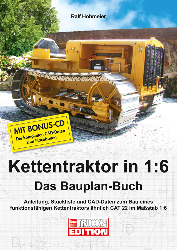 Ralf Hobmeier, RAD & KETTE-Autor und versierter Modellbau-Fachmann, hat mit seinem Erstlingswerk "Laderaupe in 1:8" zahlreichen Interessierten dazu verholfen, ein eigenes Funktionsmodell zu fertigen. Mit seinem neuen Bauplan-Buch präsentiert er nun eine ausführliche Anleitung samt kompletter Stückliste für einen Kettentraktor ähnlich CAT Twenty Two im Maßstab 1:6. Neben der detaillierten Anleitung enthält das Werk eine CD mit allen CAD-Daten, die zur Produktion der erforderlichen Laser- und 3D-Druck-Teile benötigt werden.