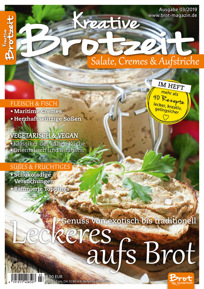 So richtig gut wird Brot erst mit dem passenden Belag. Passend zum Brot, passend zur Stimmung, passend zur Jahreszeit. Dieses Sonderheft der Zeitschrift BROT ist vollgestopft mit einfachen wie kreativen Rezepten für Leckeres aufs Brot. Süß oder würzig, einfach oder raffiniert – hier findet sich immer ein Aufstrich der passt. Zudem erleichtern farbige Symbole die Orientierung. Sie verraten auf einen Blick, ob die Zutaten leicht erhältlich oder exklusiver sind, ob der Zeitaufwand niedrig oder hoch ist und wie anspruchsvoll das jeweilige Rezept in seiner Umsetzung ist. Wer gutes Brot liebt, findet hier die geschmackliche Vollendung. Und wer gerade kein gutes Brot zur Hand hat, kann es mit den Rezepten aus „Kreative BROTZeit“ bestens aufwerten.