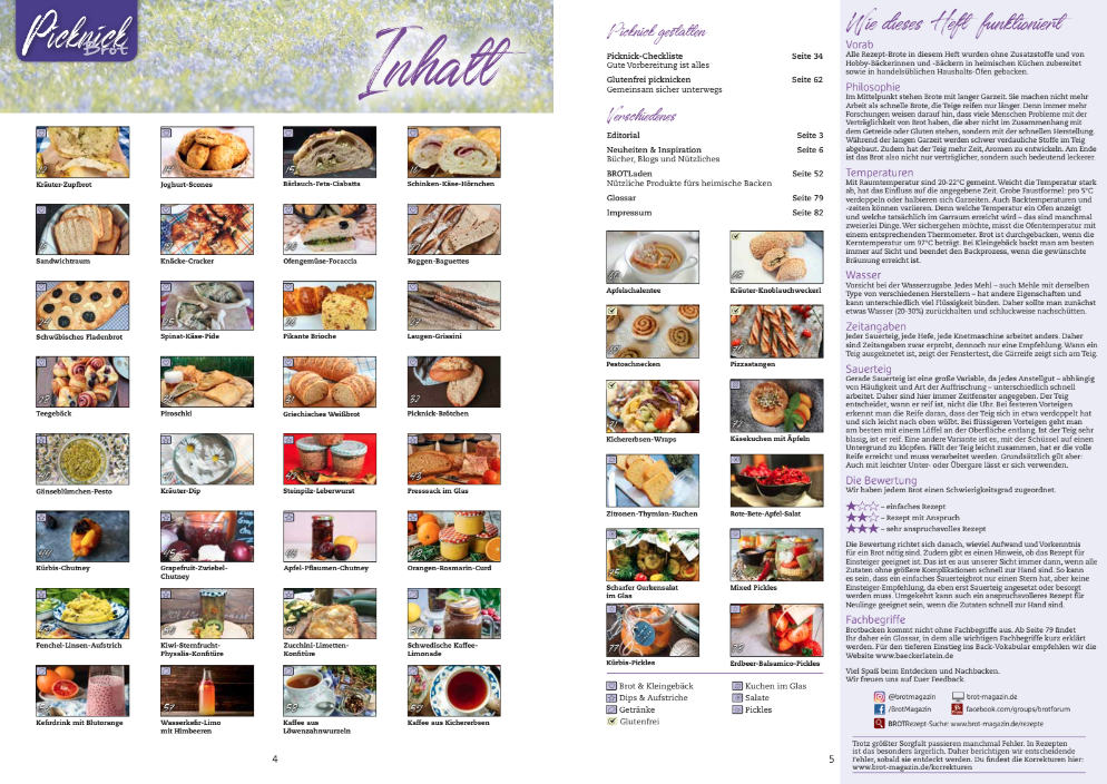 Ganz gleich, ob an einem schattigen Plätzchen im Grünen, einem Rastplatz unterwegs oder auf der Wiese am Badesee – alles muss rein in den Korb und gut verschlossen transportiert werden können. Auf das volle Aroma frisch gebackenen Brotes, von Wraps, Sandwiches und schmackhaften Aufstrichen sowie auf selbst gemachte Beilagen, knackiges Obst, Gemüse sowie Wurst, Käse und Co. muss dabei niemand verzichten. Im Sonderheft finden sich spannende Hintergrundartikel und mehr als 30 gelingsichere Rezepte.
