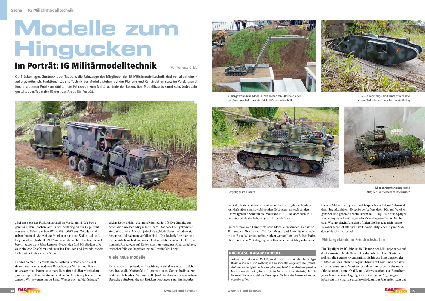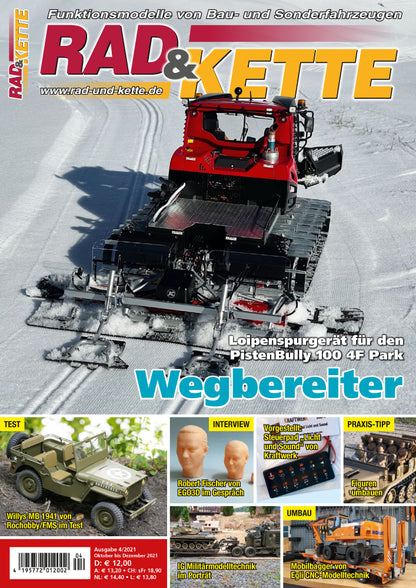 RAD & KETTE widmet sich als einziges regelmäßiges Magazin in Europa in dieser Tiefenschärfe den faszinierenden Funktionsmodellen von Bau- und Sonderfahrzeugen. Dabei wird auch der technisch höchst anspruchsvolle Bereich Militärmodellbau nicht ausgespart. Die Mischung überzeugt. So sehr, dass das Magazin seit 2010 viermal statt dreimal jährlich erscheint.