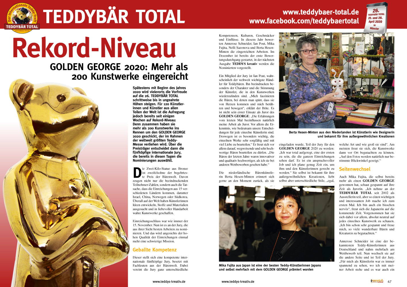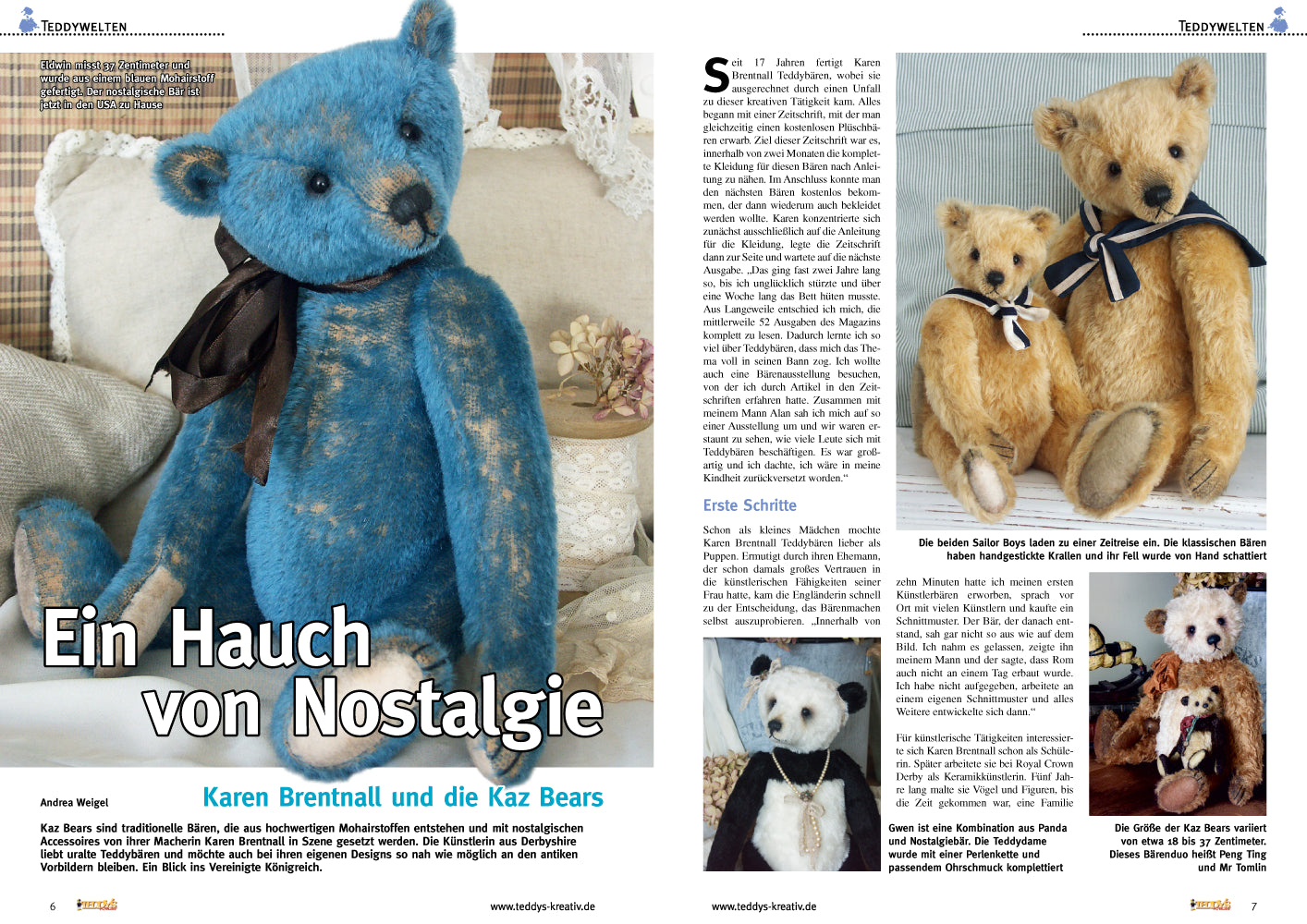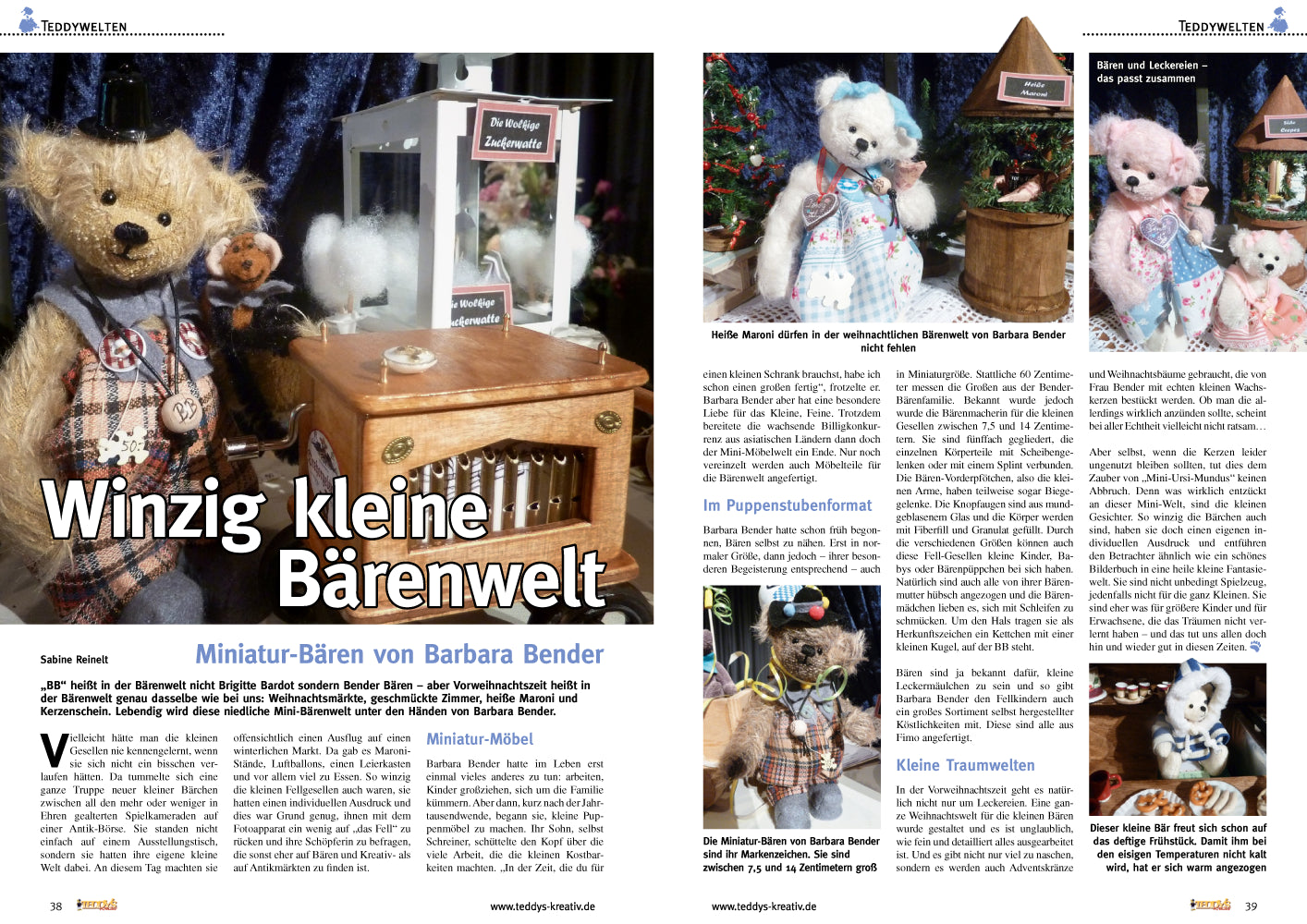 TEDDYS kreativ widmet sich allen Aspekten rund um Teddybären und Plüschtiere. Fundierte Informationen einerseits, liebenswerte Geschichten andererseits machen das Magazin zum unverzichtbaren Begleiter für Teddy-Liebhaber, -Sammler und -Künstler. Ein umfangreicher Kreativteil mit Nähanleitungen und Schnittbögen zum Nacharbeiten gehört zu jeder Ausgabe. Vervollständigt wird TEDDYS kreativ durch Profi-Tipps für Einsteiger und Fortgeschrittene sowie durch ausführliche Antik- und Auktionsberichte.