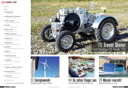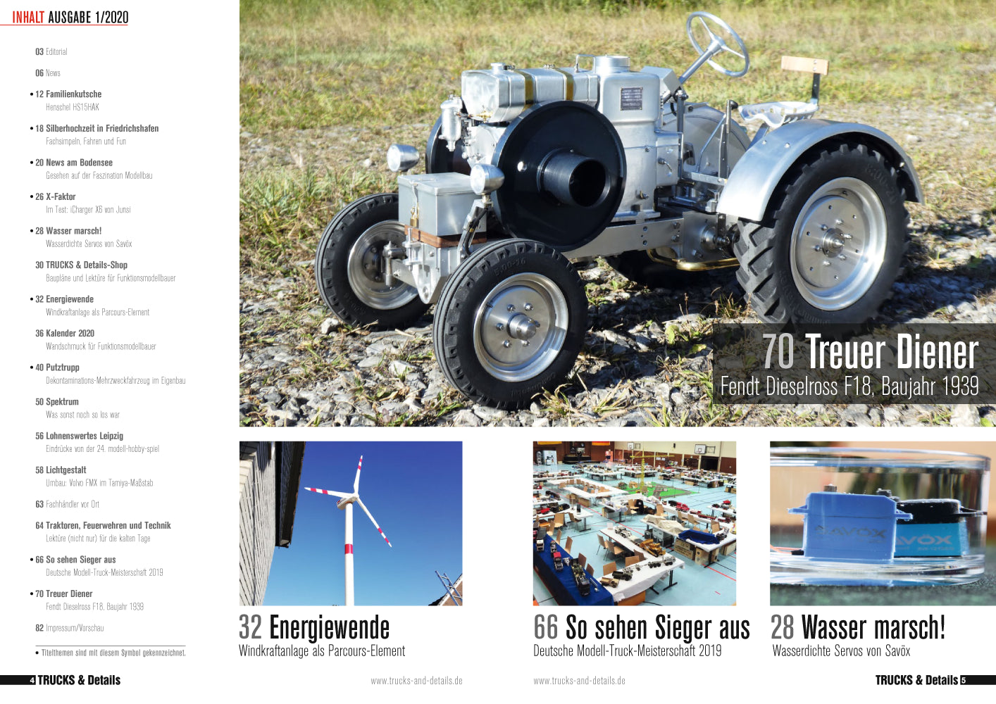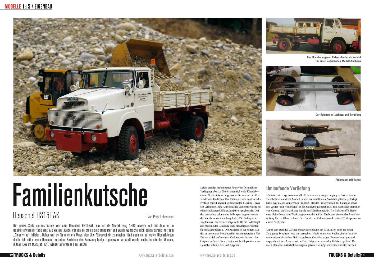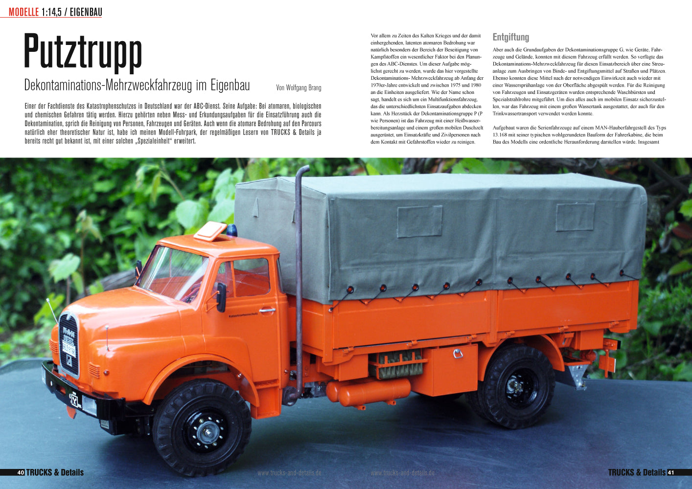 TRUCKS & Details ist die Modellbauzeitschrift für Nutzfahrzeugfreunde. Kompetent, unterhaltsam und immer nah an der Szene berichtet das Magazin über European & American Trucks, Aktuelle Fahrzeuge & Oldtimer. Dabei kommen sämtliche Maßstäbe vor, 1:8 bis 1:87. Einen großen Teil nehmen Eigenbauten ein, die zum Nachbauen animieren. Baumaschinen, Neuheiten am Markt, Elektrik & Elektronik, Materialbearbeitung und vieles mehr runden das Portfolio ab.