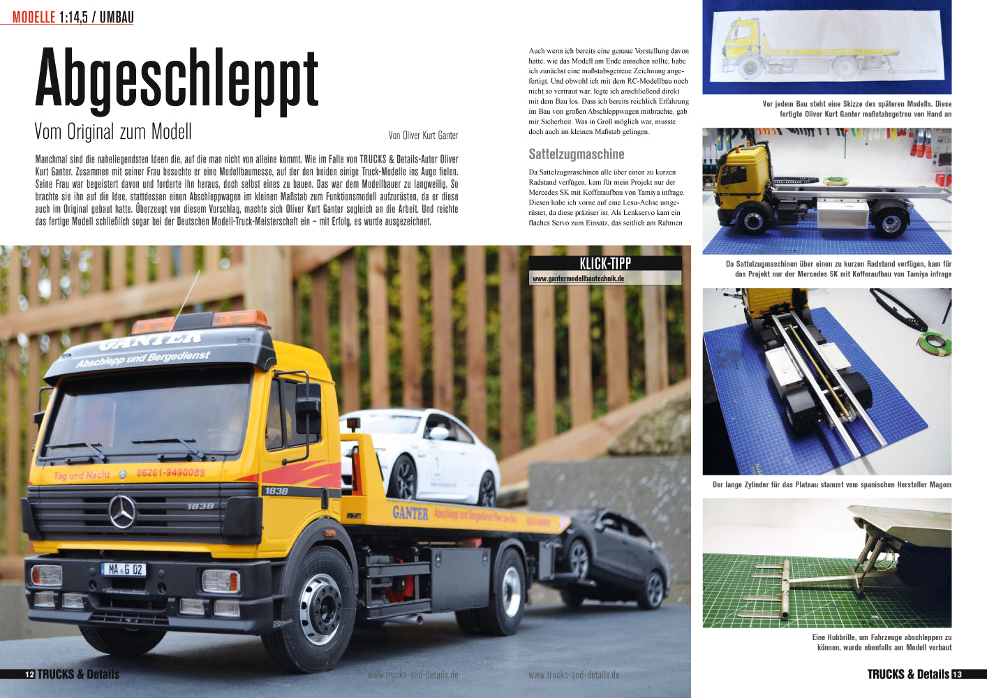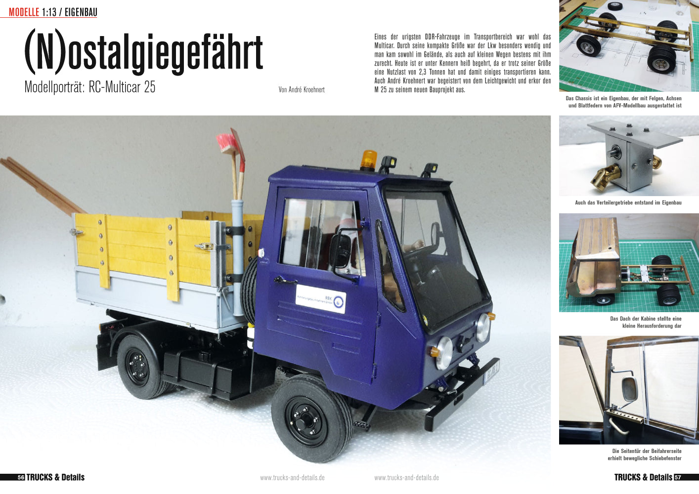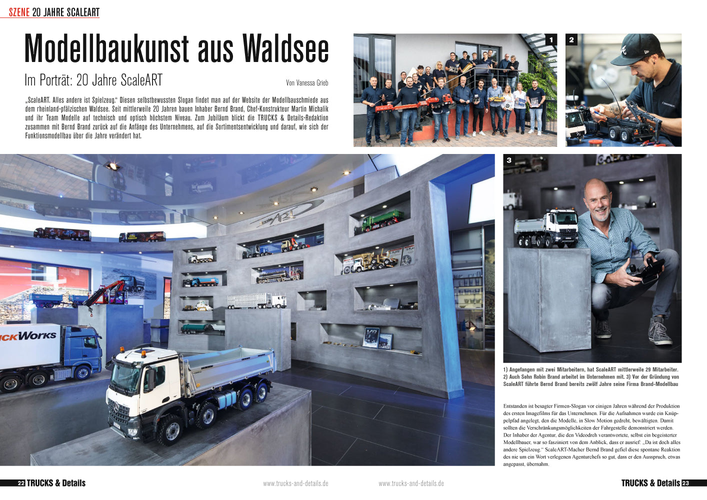 TRUCKS & Details ist die Modellbauzeitschrift für Nutzfahrzeugfreunde. Kompetent, unterhaltsam und immer nah an der Szene berichtet das Magazin über European & American Trucks, Aktuelle Fahrzeuge & Oldtimer. Dabei kommen sämtliche Maßstäbe vor, 1:8 bis 1:87. Einen großen Teil nehmen Eigenbauten ein, die zum Nachbauen animieren. Baumaschinen, Neuheiten am Markt, Elektrik & Elektronik, Materialbearbeitung und vieles mehr runden das Portfolio ab.