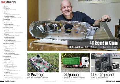 Jan Schönberg, Chefredakteur TRUCKS & Details: „Mein Ziel ist es, mit meinem Team in unserem Magazin regelmäßig alle relevanten Informationen rund um RC-Nutzfahrzeuge in bekömmlicher Form zu präsentieren – stets unabhängig und an den Wünschen unserer Leser ausgerichtet. Im Mittelpunkt stehen neben Testberichten und Informationen aus der Szene vor allem Eigenbauten. Denn TRUCKS & Details, das ist noch echter Modellbau.“