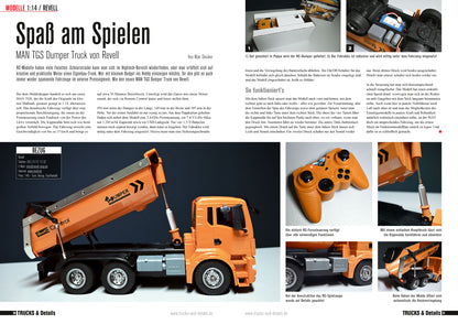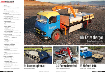 TRUCKS & Details ist die Modellbauzeitschrift für Nutzfahrzeugfreunde. Kompetent, unterhaltsam und immer nah an der Szene berichtet das Magazin über European & American Trucks, Aktuelle Fahrzeuge & Oldtimer. Dabei kommen sämtliche Maßstäbe vor, 1:8 bis 1:87. Einen großen Teil nehmen Eigenbauten ein, die zum Nachbauen animieren. Baumaschinen, Neuheiten am Markt, Elektrik & Elektronik, Materialbearbeitung und vieles mehr runden das Portfolio ab.