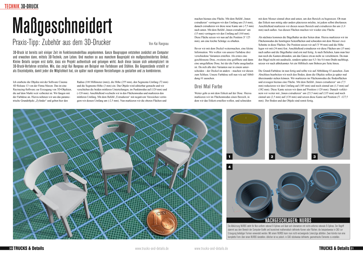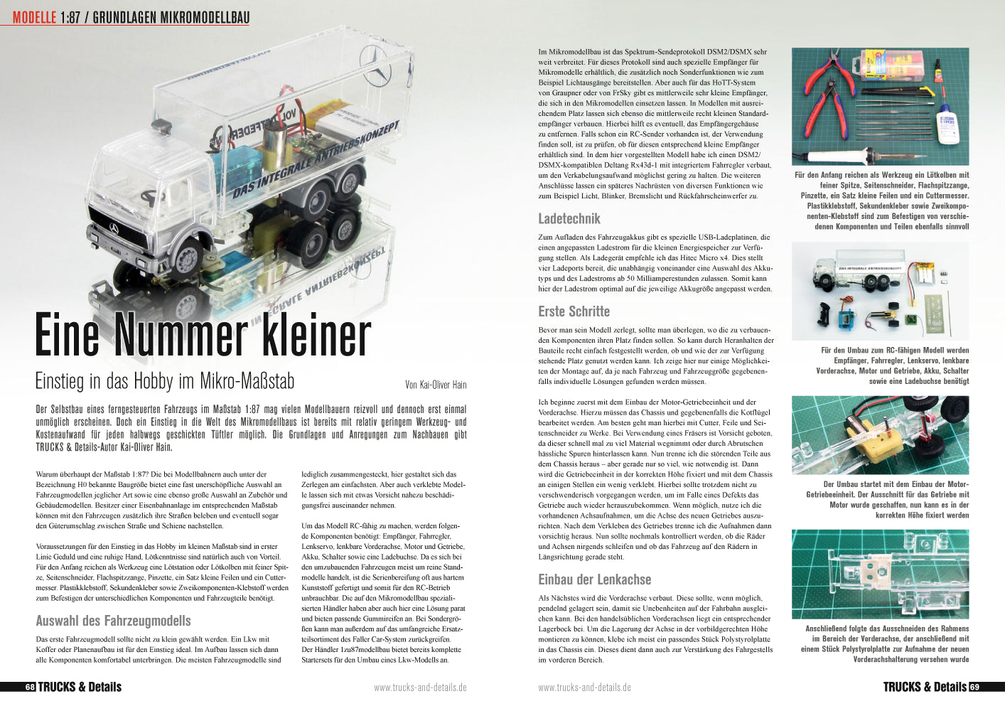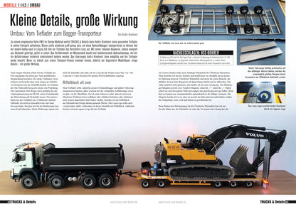 TRUCKS & Details ist die Modellbauzeitschrift für Nutzfahrzeugfreunde. Kompetent, unterhaltsam und immer nah an der Szene berichtet das Magazin über European & American Trucks, Aktuelle Fahrzeuge & Oldtimer. Dabei kommen sämtliche Maßstäbe vor, 1:8 bis 1:87. Einen großen Teil nehmen Eigenbauten ein, die zum Nachbauen animieren. Baumaschinen, Neuheiten am Markt, Elektrik & Elektronik, Materialbearbeitung und vieles mehr runden das Portfolio ab.