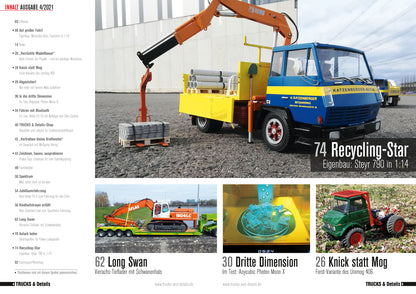 TRUCKS & Details ist die Modellbauzeitschrift für Nutzfahrzeugfreunde. Kompetent, unterhaltsam und immer nah an der Szene berichtet das Magazin über European & American Trucks, Aktuelle Fahrzeuge & Oldtimer. Dabei kommen sämtliche Maßstäbe vor, 1:8 bis 1:87. Einen großen Teil nehmen Eigenbauten ein, die zum Nachbauen animieren. Baumaschinen, Neuheiten am Markt, Elektrik & Elektronik, Materialbearbeitung und vieles mehr runden das Portfolio ab.