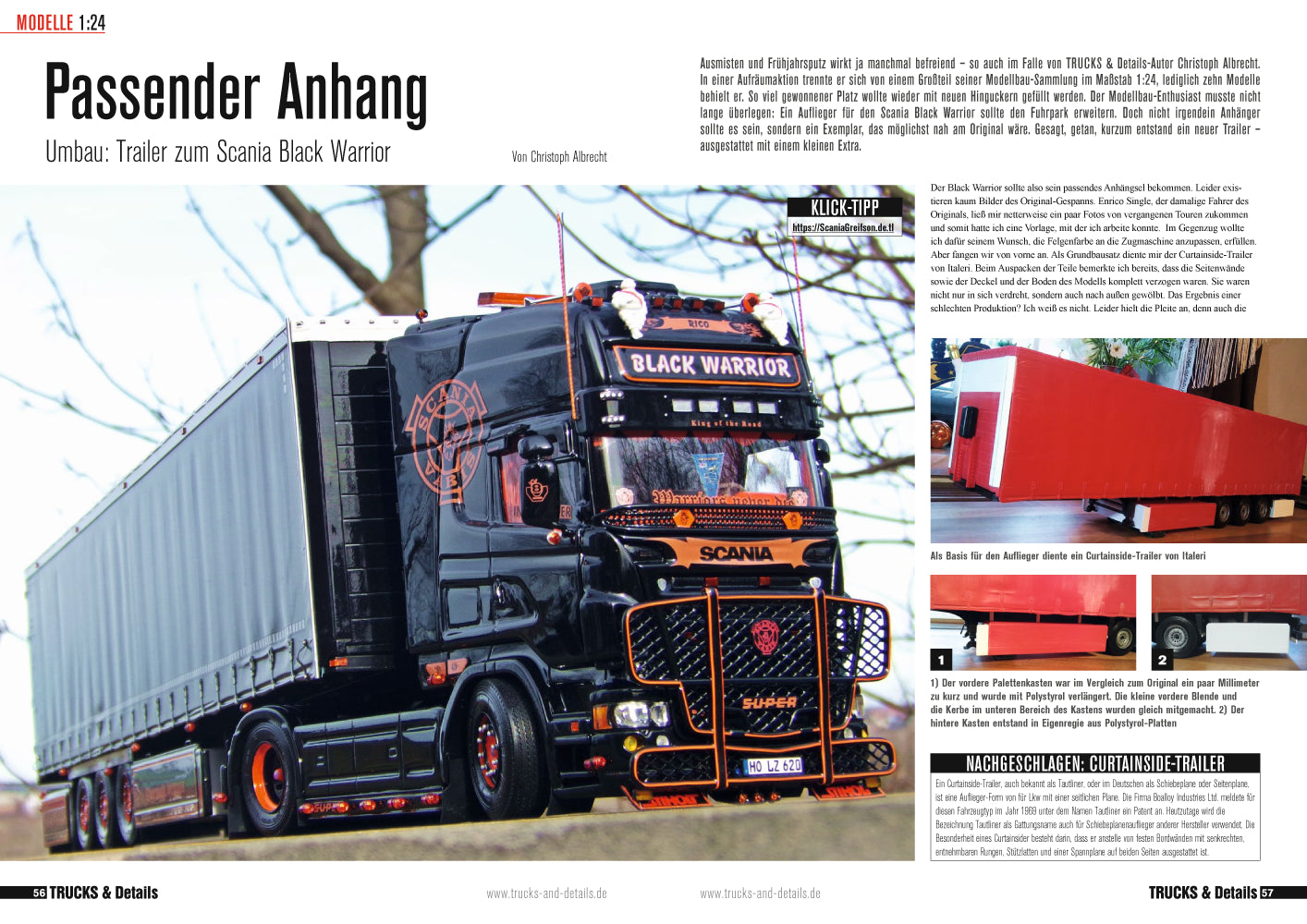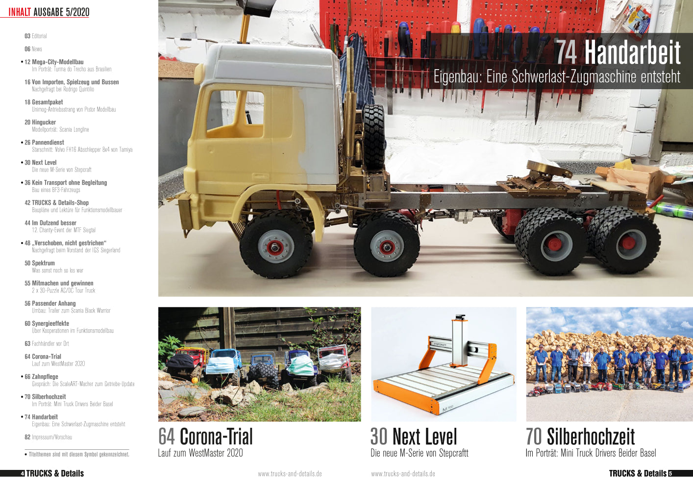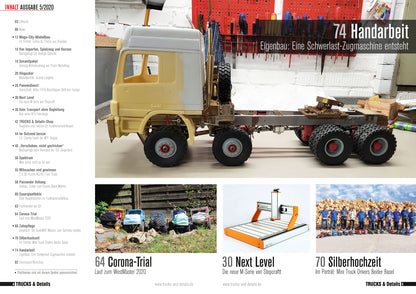 TRUCKS & Details ist die Modellbauzeitschrift für Nutzfahrzeugfreunde. Kompetent, unterhaltsam und immer nah an der Szene berichtet das Magazin über European & American Trucks, Aktuelle Fahrzeuge & Oldtimer. Dabei kommen sämtliche Maßstäbe vor, 1:8 bis 1:87. Einen großen Teil nehmen Eigenbauten ein, die zum Nachbauen animieren. Baumaschinen, Neuheiten am Markt, Elektrik & Elektronik, Materialbearbeitung und vieles mehr runden das Portfolio ab.