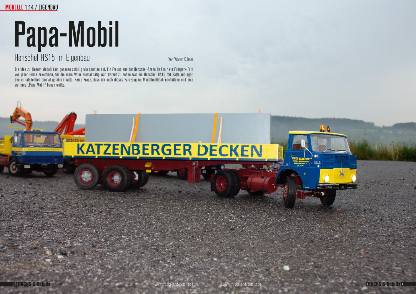 TRUCKS & Details ist die Modellbauzeitschrift für Nutzfahrzeugfreunde. Kompetent, unterhaltsam und immer nah an der Szene berichtet das Magazin über European & American Trucks, Aktuelle Fahrzeuge & Oldtimer. Dabei kommen sämtliche Maßstäbe vor, 1:8 bis 1:87. Einen großen Teil nehmen Eigenbauten ein, die zum Nachbauen animieren. Baumaschinen, Neuheiten am Markt, Elektrik & Elektronik, Materialbearbeitung und vieles mehr runden das Portfolio ab.