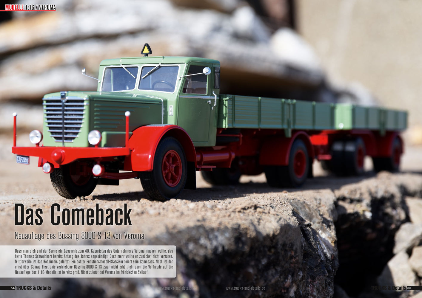 TRUCKS & Details ist die Modellbauzeitschrift für Nutzfahrzeugfreunde. Kompetent, unterhaltsam und immer nah an der Szene berichtet das Magazin über European & American Trucks, Aktuelle Fahrzeuge & Oldtimer. Dabei kommen sämtliche Maßstäbe vor, 1:8 bis 1:87. Einen großen Teil nehmen Eigenbauten ein, die zum Nachbauen animieren. Baumaschinen, Neuheiten am Markt, Elektrik & Elektronik, Materialbearbeitung und vieles mehr runden das Portfolio ab.