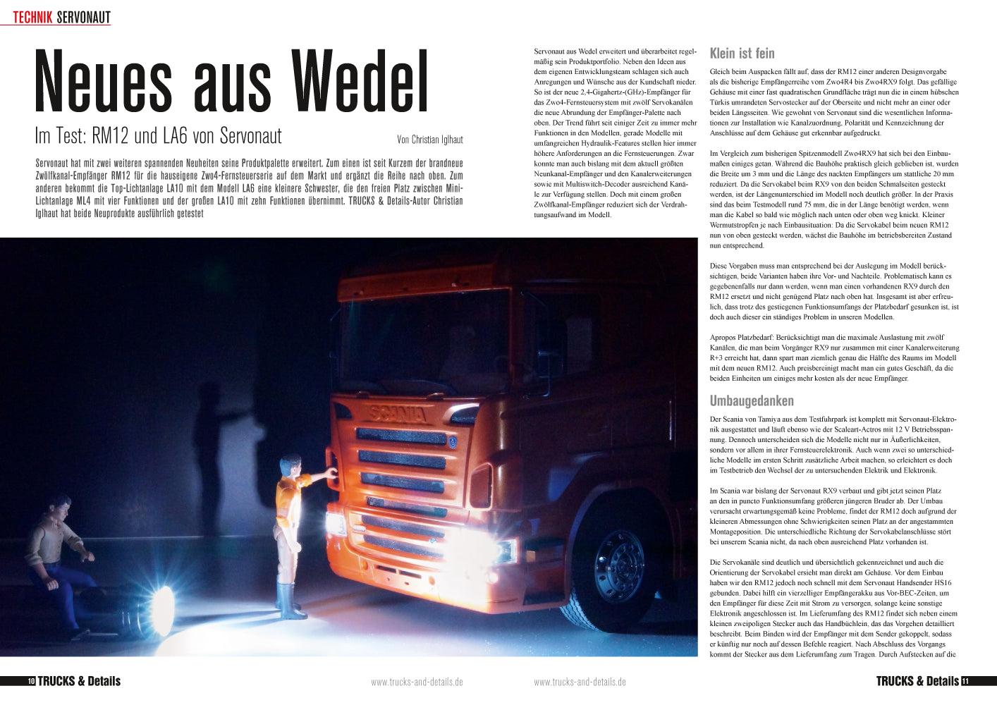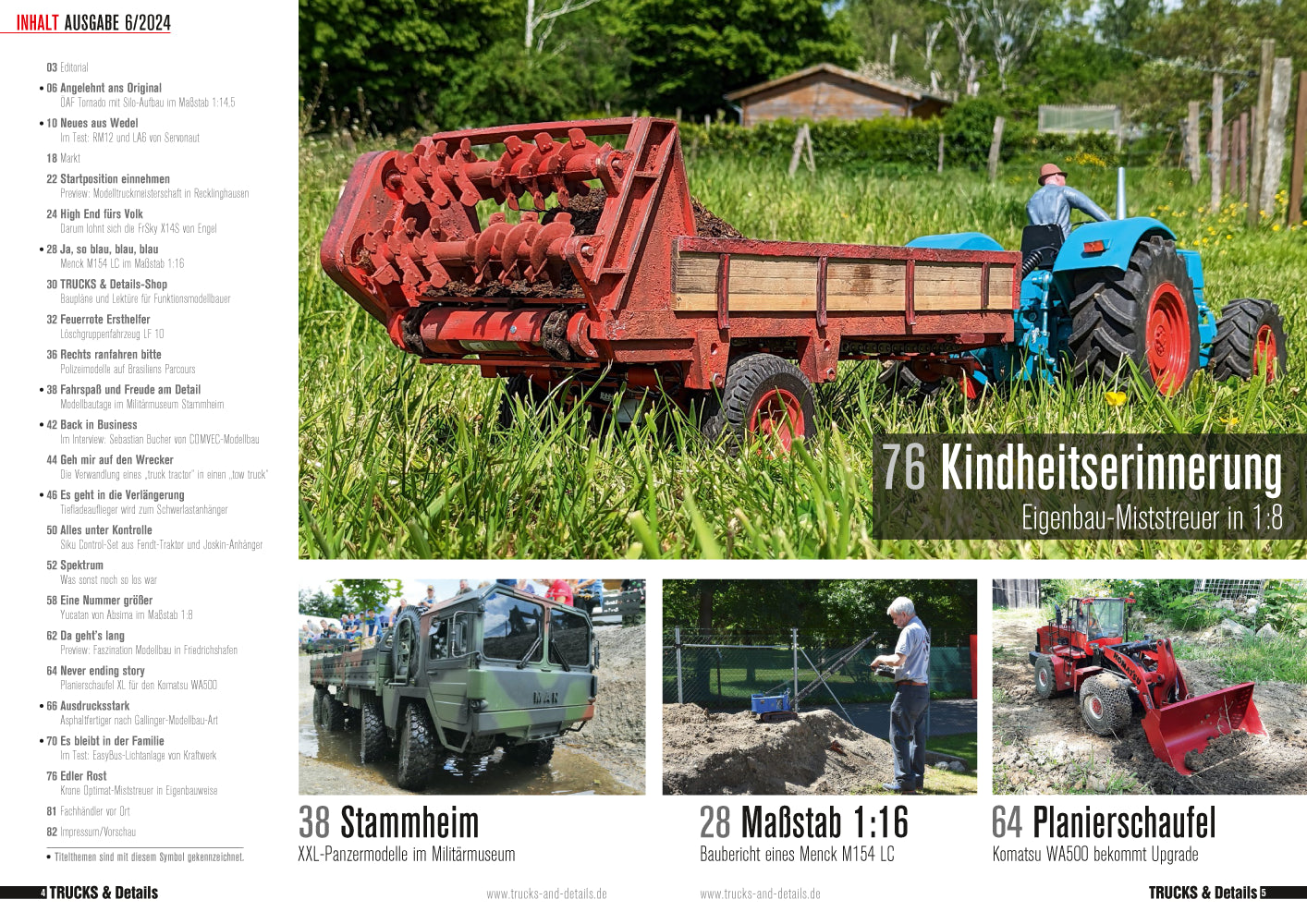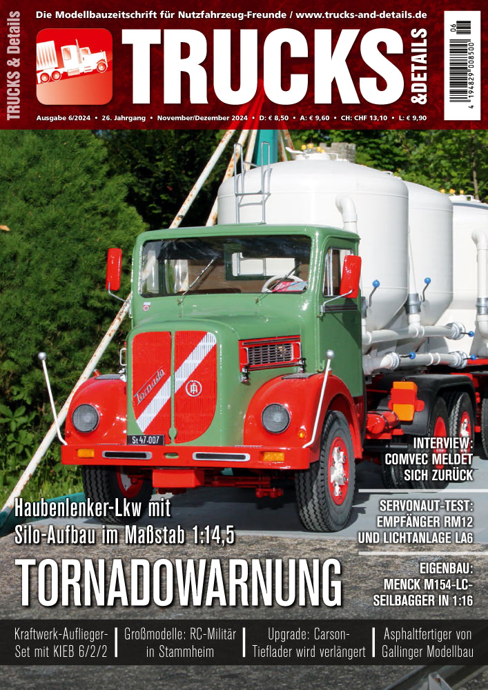 Jan Schönberg, Chefredakteur TRUCKS & Details: „Mein Ziel ist es, mit meinem Team in unserem Magazin regelmäßig alle relevanten Informationen rund um RC-Nutzfahrzeuge in bekömmlicher Form zu präsentieren – stets unabhängig und an den Wünschen unserer Leser ausgerichtet. Im Mittelpunkt stehen neben Testberichten und Informationen aus der Szene vor allem Eigenbauten. Denn TRUCKS & Details, das ist noch echter Modellbau.“